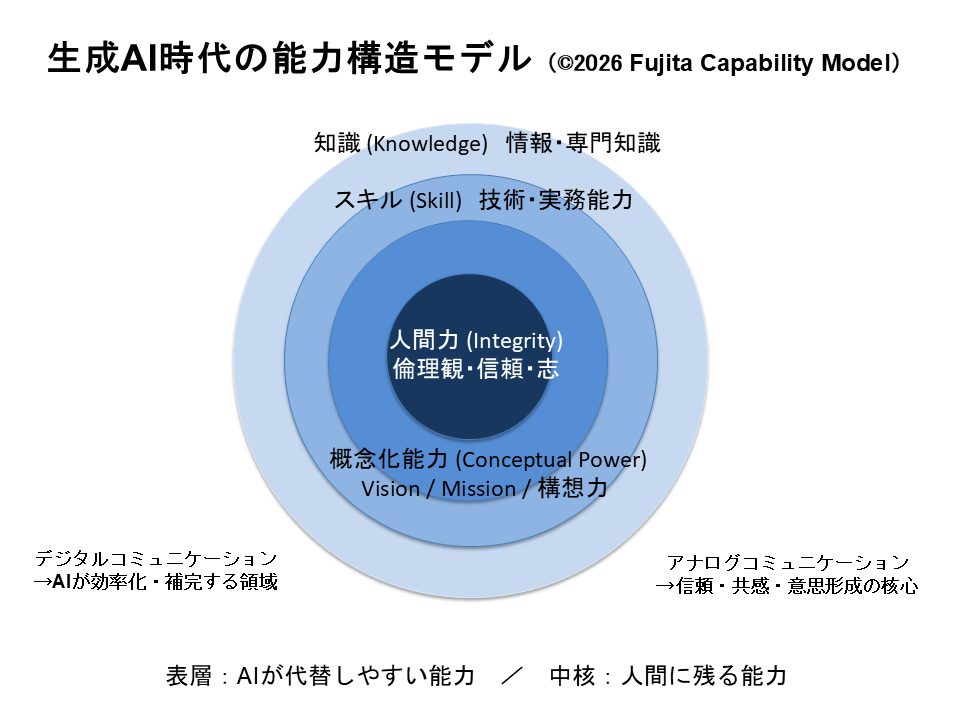 「生成AI時代の能力構造モデル」を作成しました。是非とも、これを問題提起として捉え、ご自身で必要な能力やキャリアを考えてみてはいかがでしょう?