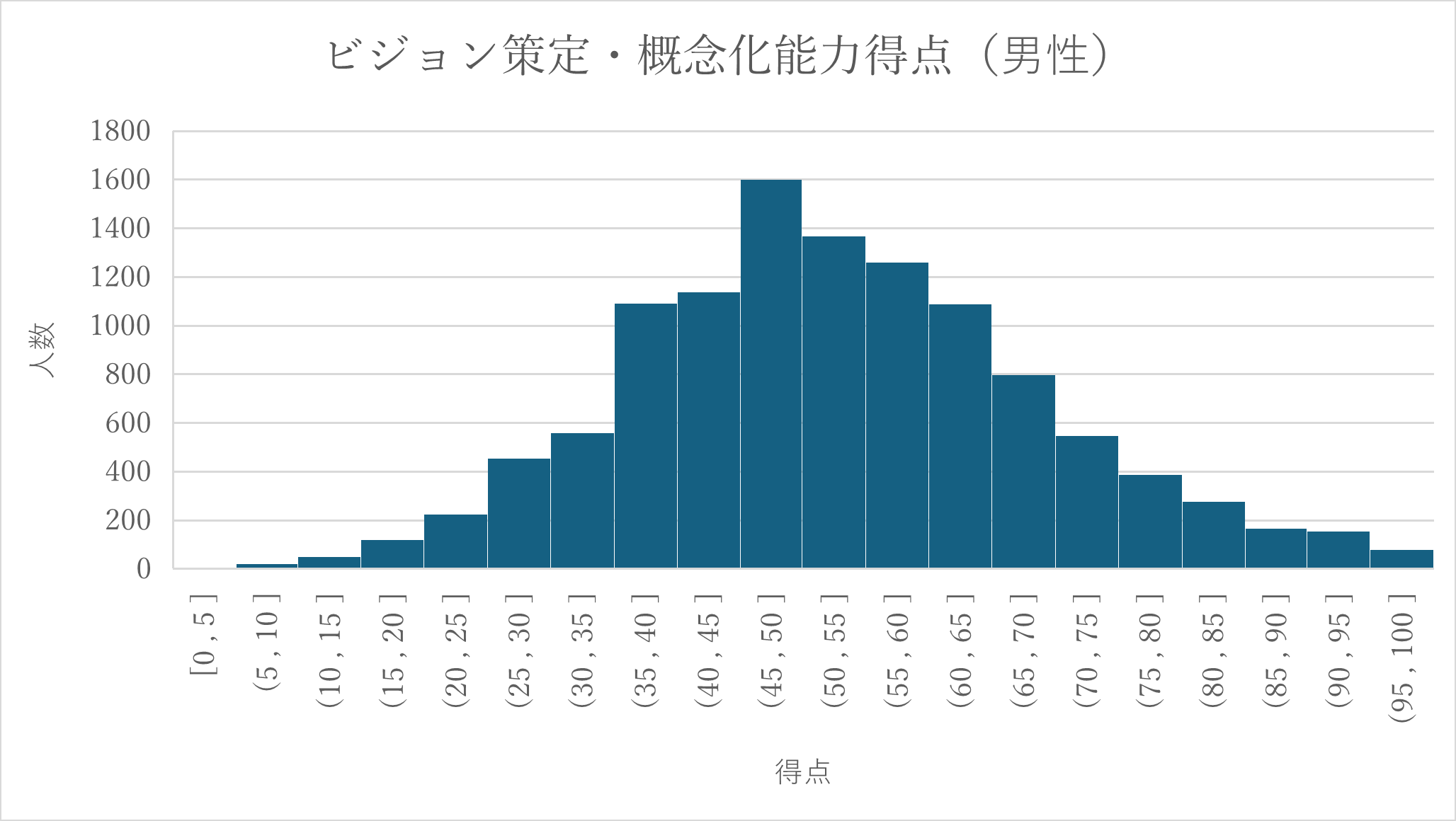 弊社が開発した「市場価値測定テスト」において、「ビジョン策定・概念化能力」を男女別に分析したところ、100点満点中70点以上の高スコアを獲得した割合は、男性の23%に対し、女性は30%という結果になりました。このデータから、高いビジョン概念化能力を備えた人材は、女性に多く存在する事実が浮き彫りとなっています。